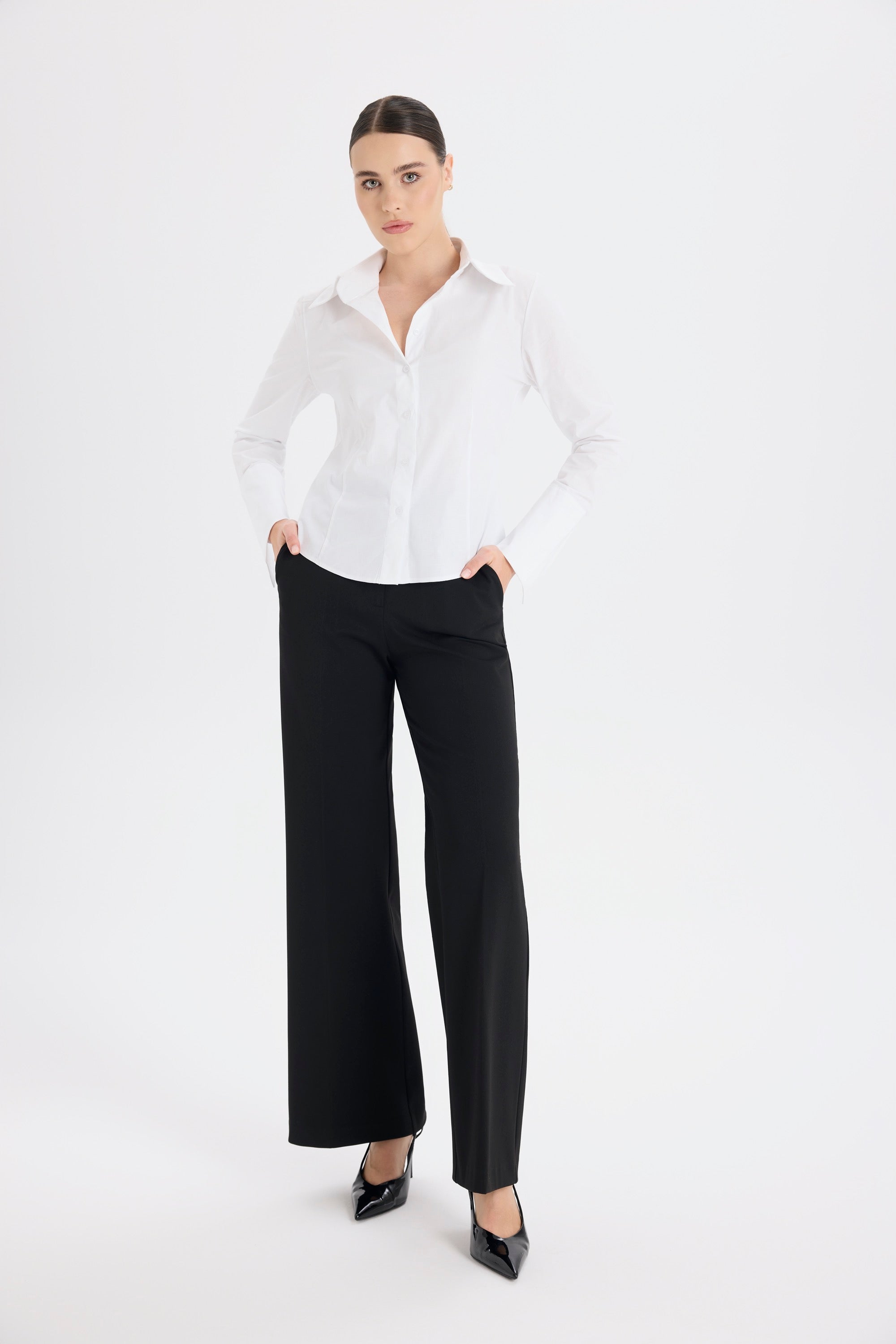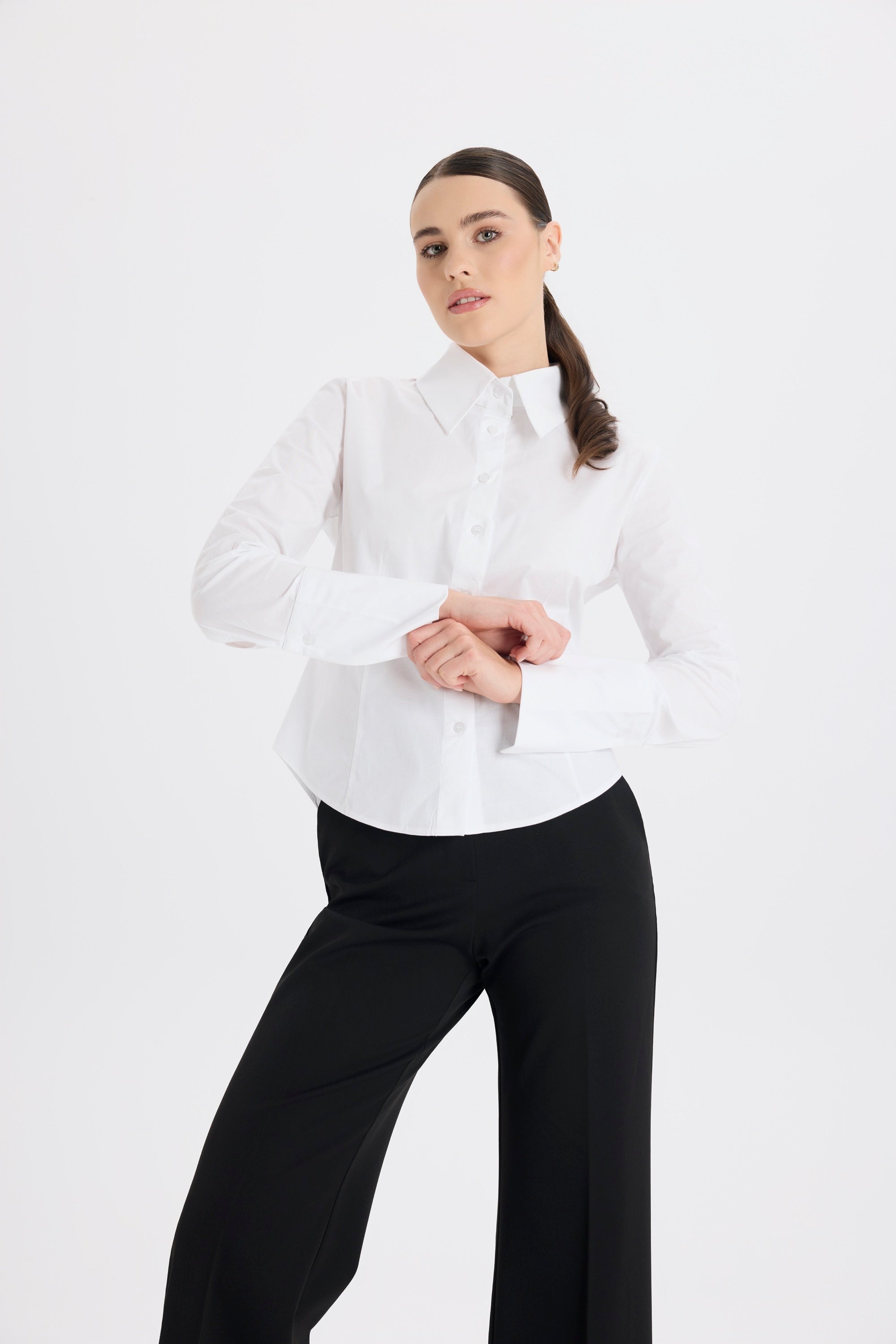 Belden Oturan Klasik Kesim Beyaz Poplin Gömlek