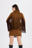 Blazer Yaka Tül Detaylı Bordo Crop Yelek %50 indirim