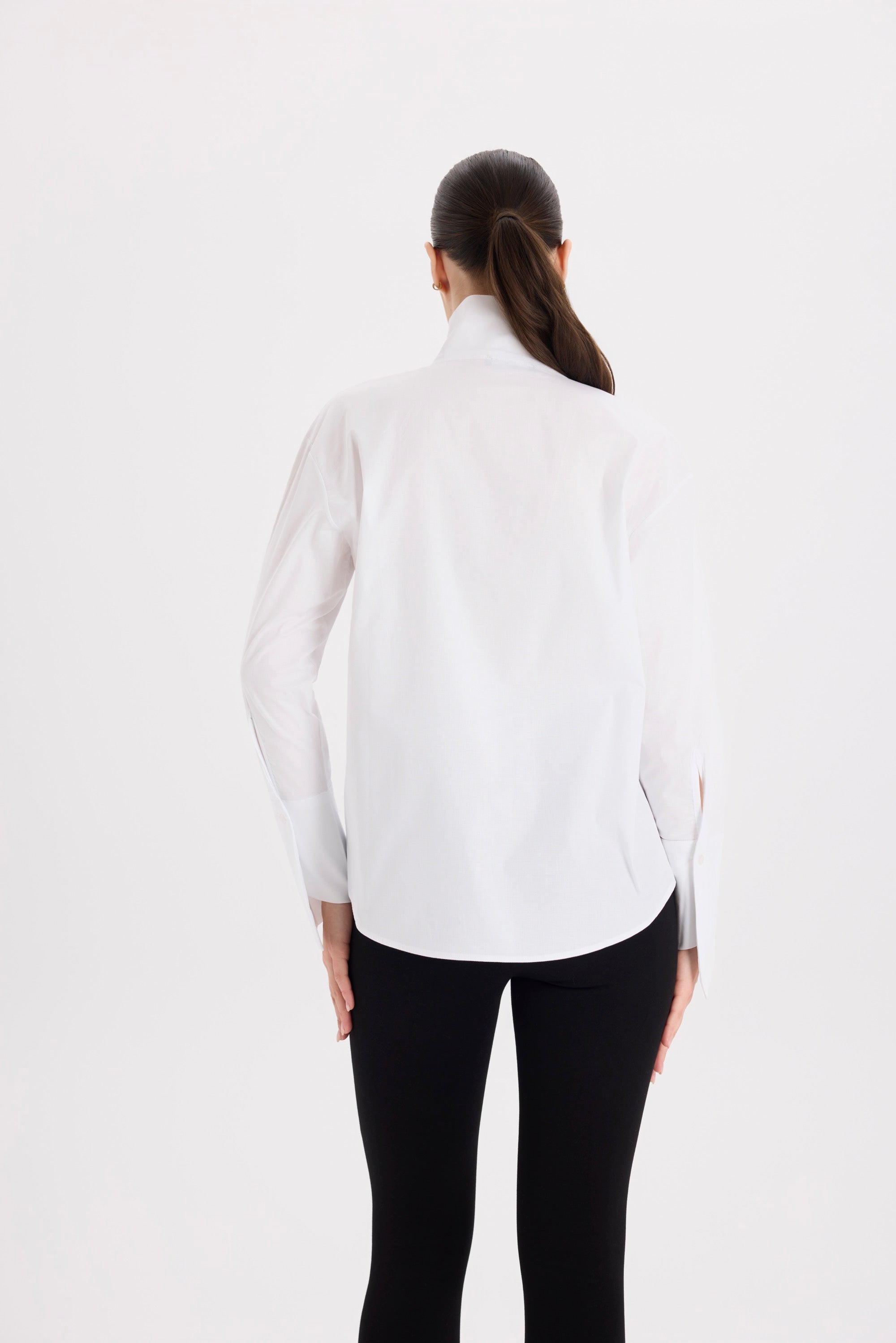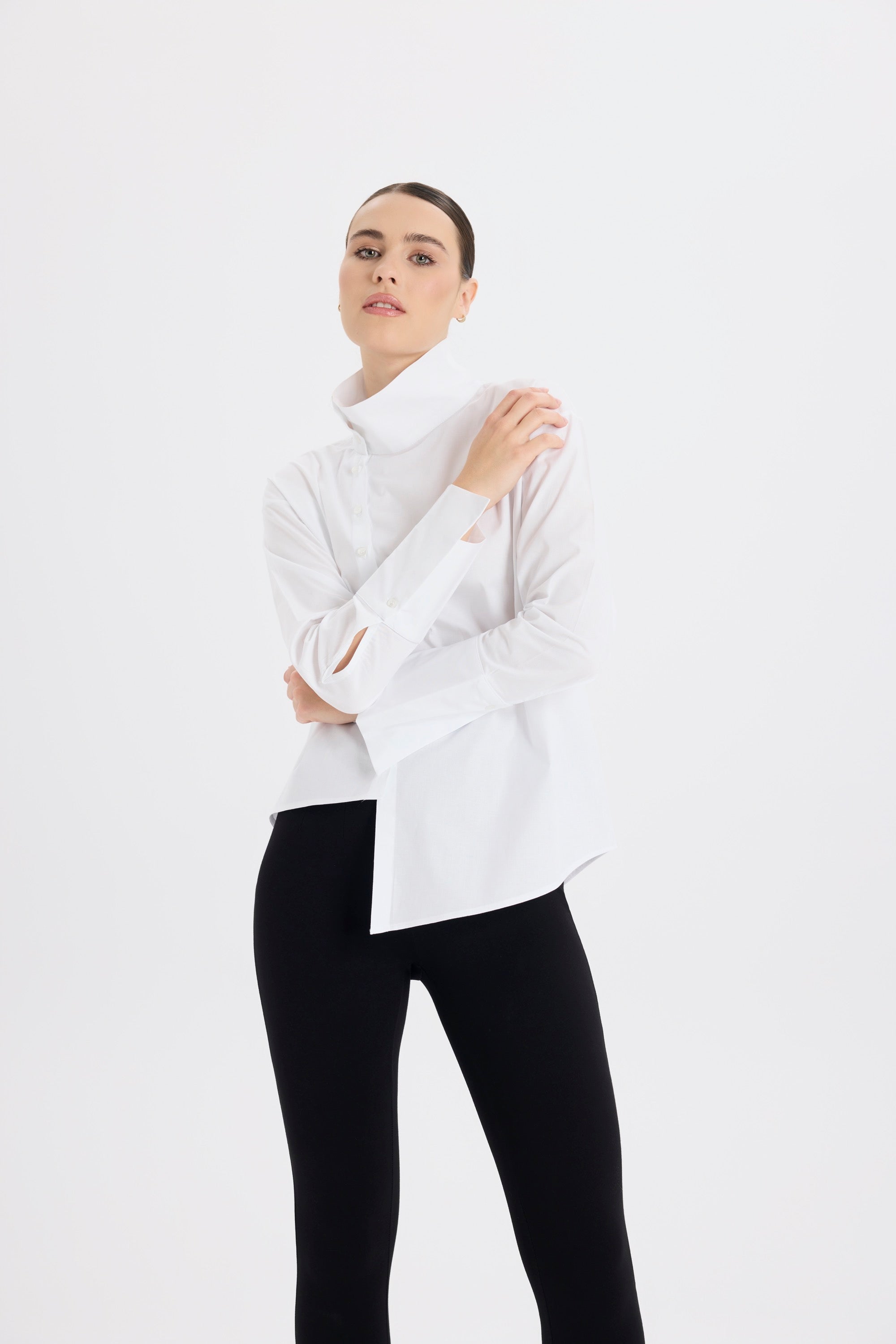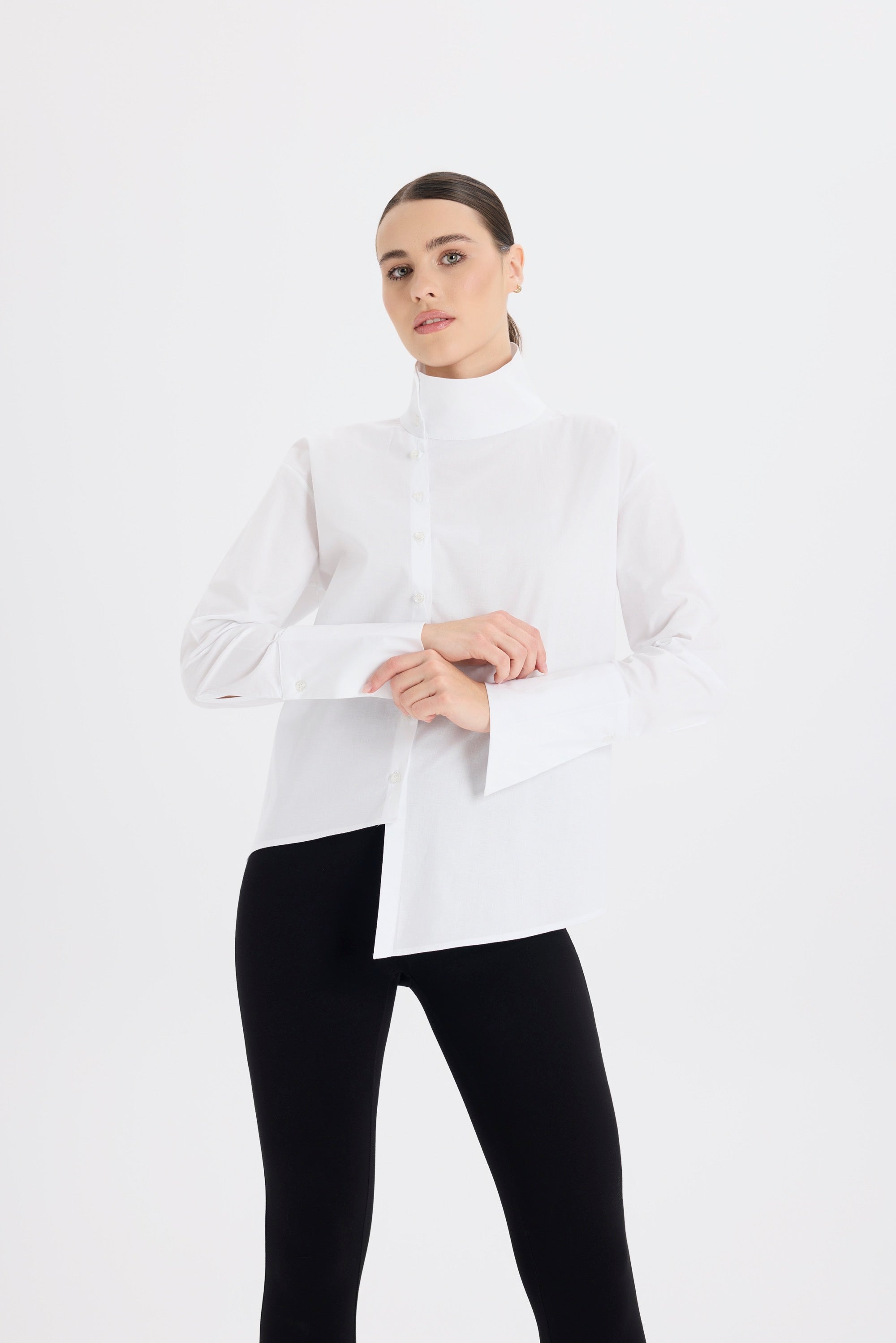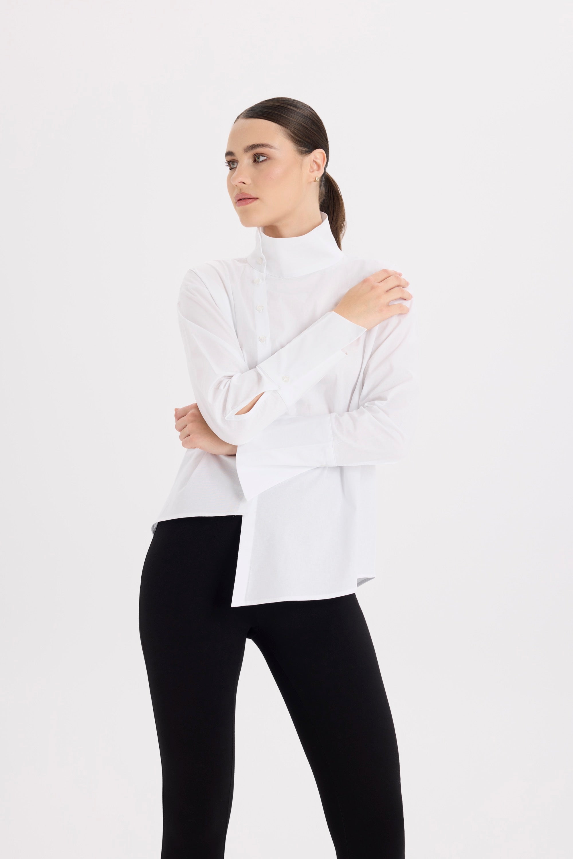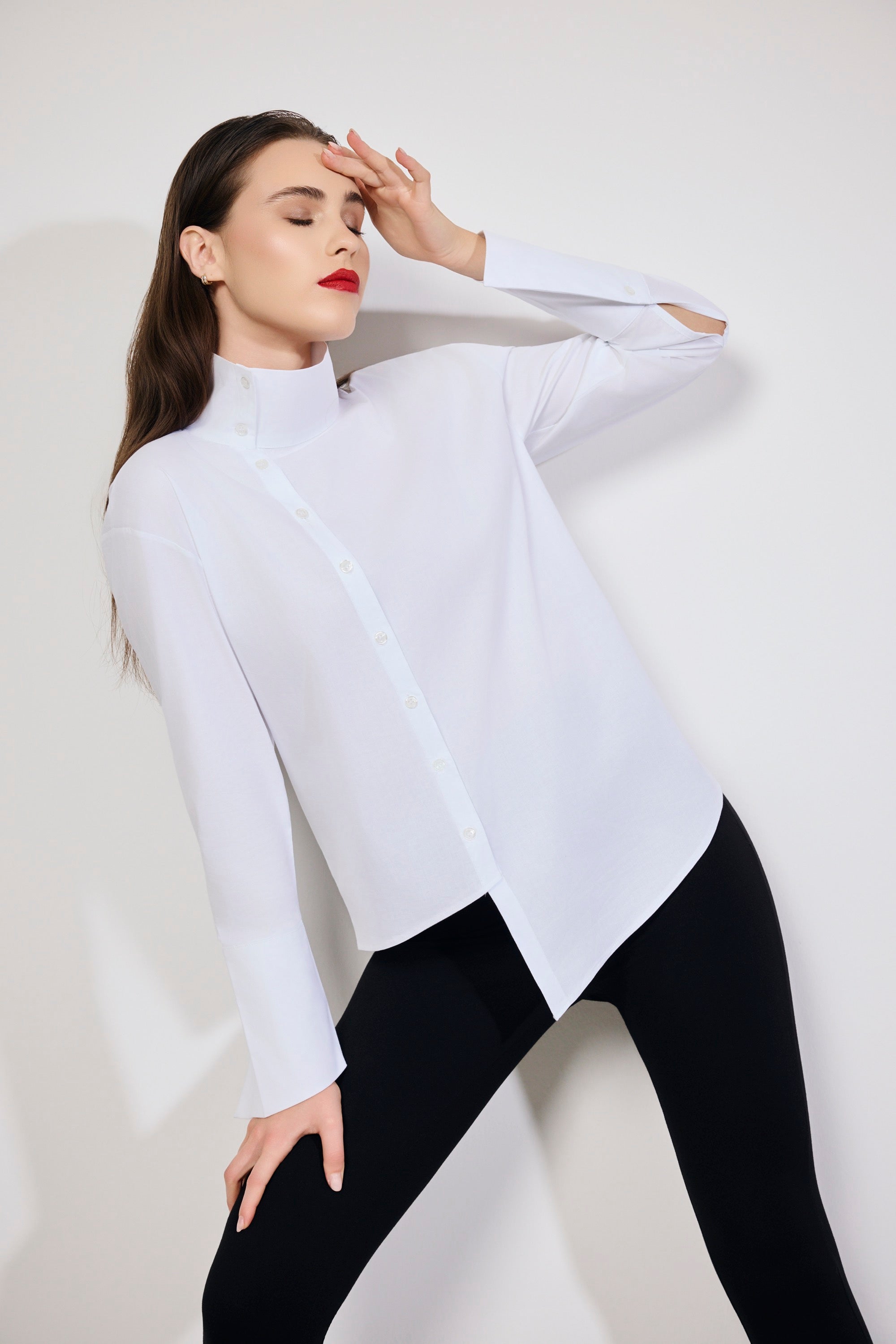 Asimetrik Dik Yaka Beyaz Gömlek