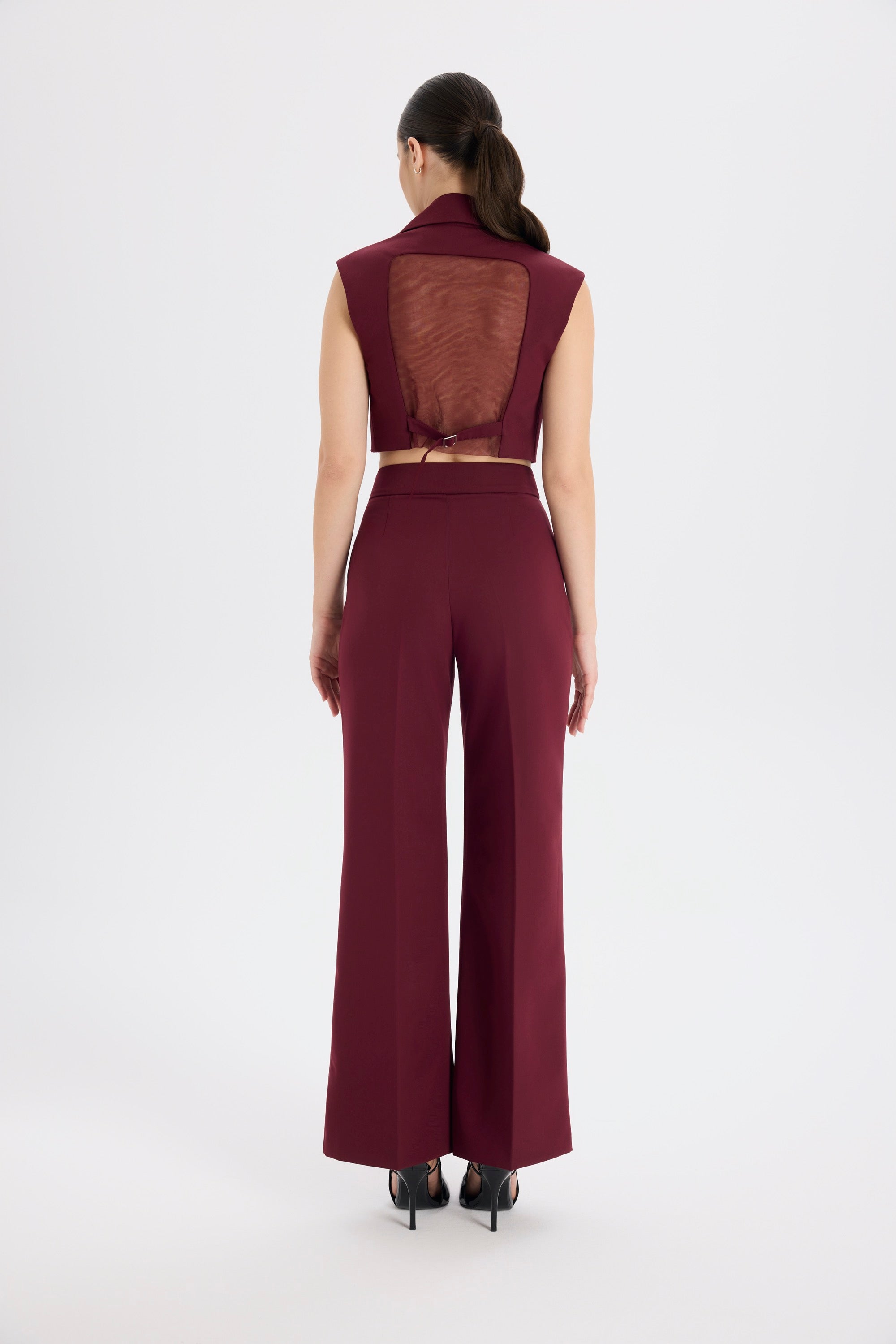 Yüksek Bel Bordo Wide-Leg Pantolon